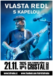 Folkový zpěvák, textař, skladatel a multiinstrumentalista Vlasta Redl vystoupí spolu se svou kapelou 21. 11. 2025 v Rosicích.